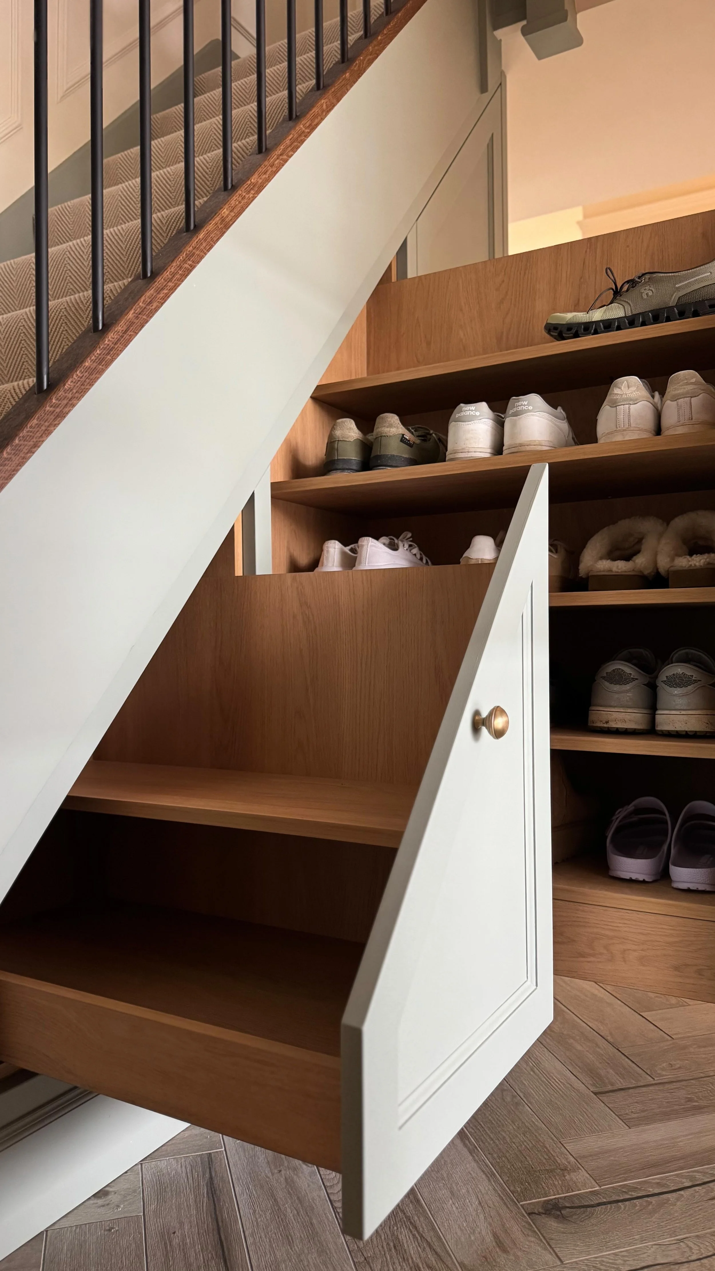 • Utility & Functional Spaces: Boot rooms with integrated seating and storage, utility room cabinetry, under stairs storage solutions and other bespoke built-in furniture to make the most of awkward or underused spaces.