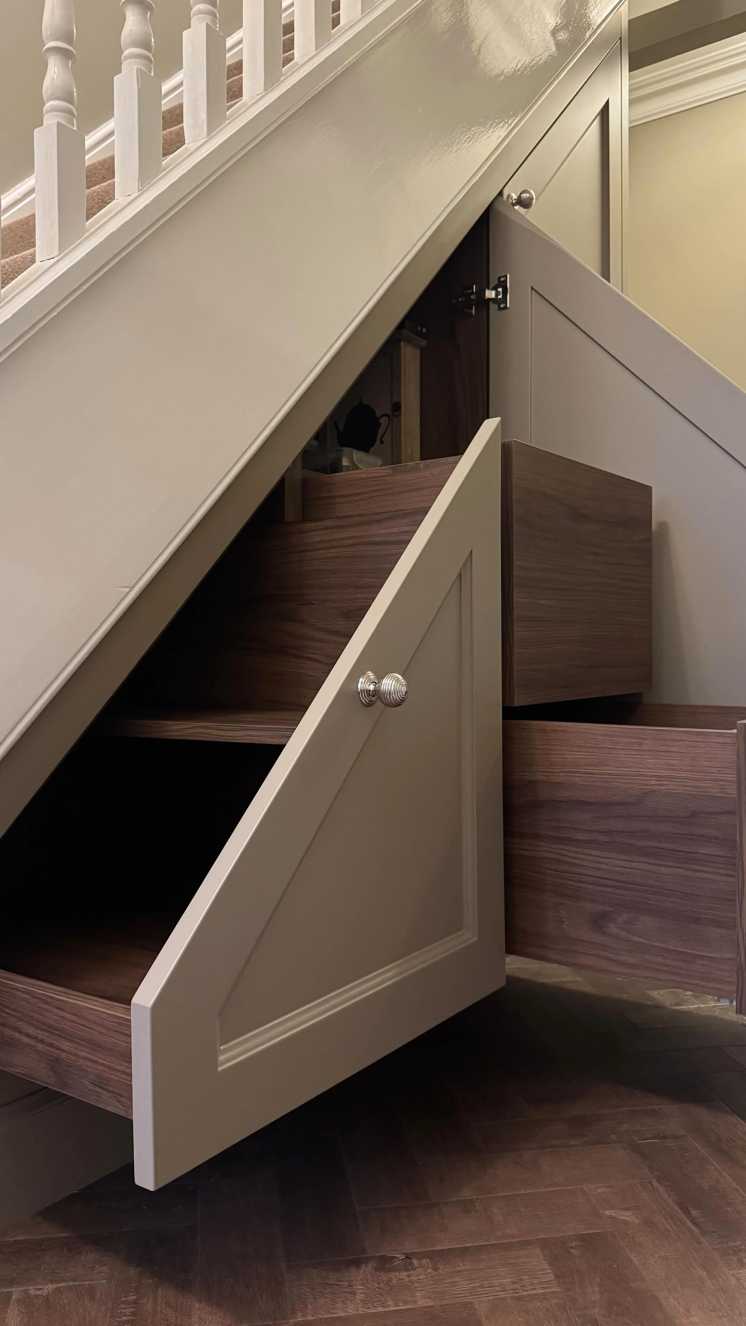 β’ Utility & Functional Spaces: Boot rooms with integrated seating and storage, utility room cabinetry, under stairs storage solutions and other bespoke built-in furniture to make the most of awkward or underused spaces.